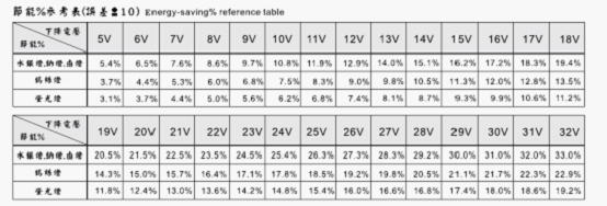 節能%參考表(誤差±10):