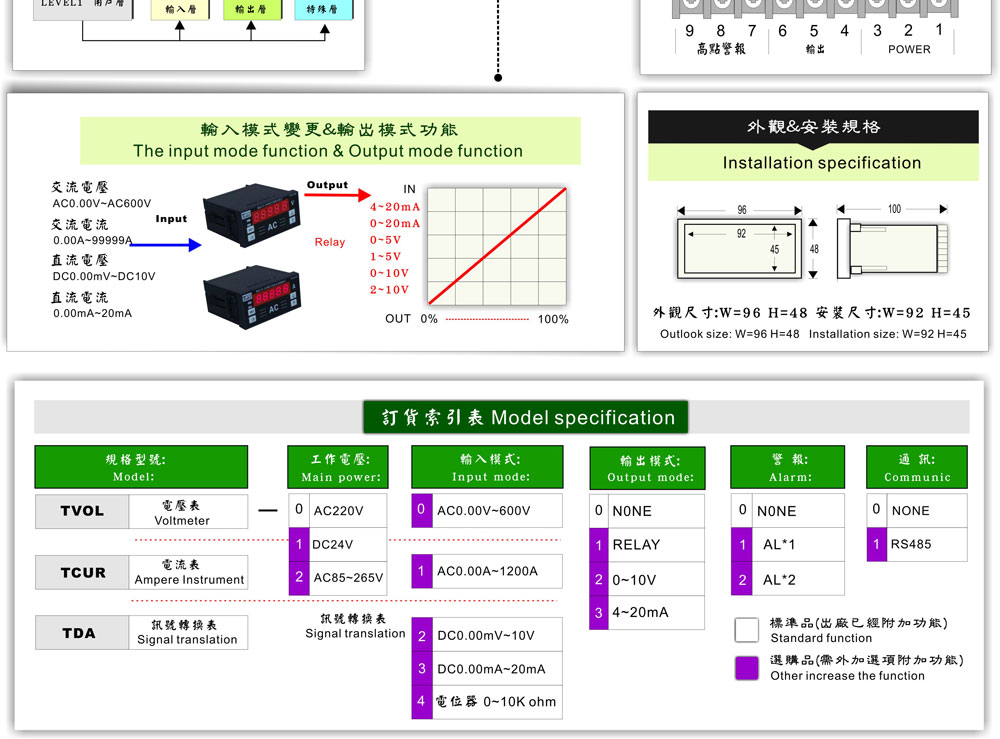 檢測范圍: 電壓:(AC.DC)0.00~600.0V 電流:(AC.DC)0.00~2000.0A 輸出模式: 上限.下限警報